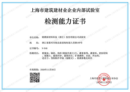 上海市建筑建材業(yè)企業(yè)內(nèi)部試驗(yàn)室檢測(cè)能力證書