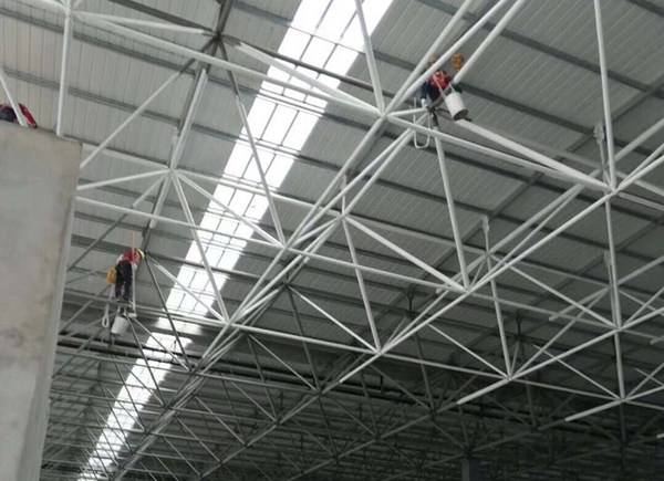 3、屏蔽。鋼結(jié)構(gòu)設(shè)置在耐火材料組成的墻體或頂棚內(nèi),或?qū)?gòu)件包藏在兩片墻之間的空隙里,只要增加少許耐火材料或不增加即能達到防火的目的。這是一種最為經(jīng)濟的防火方法。