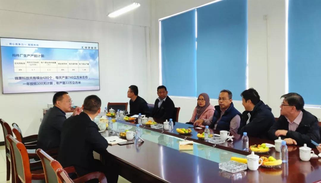 11月20日,馬來西亞建筑工業(yè)發(fā)展局總經(jīng)理Ahmad Farrin Mokhtar、MIDA駐華投資領(lǐng)事Steven Cheng、MIDA駐華投資處Anthony Wong、馬來西亞構(gòu)件廠建廠咨詢顧問NG KOK PENG(黃國平)、馬來西亞最大構(gòu)件廠GAMUDA總經(jīng)理Tan EK Khai等一行來到我公司海鹽預(yù)制構(gòu)件生產(chǎn)基地參觀考察,公司董事長兼總經(jīng)理李軍、副總經(jīng)理陳象熱情接待了來自馬來西亞的客人們。