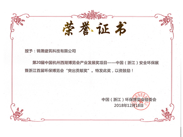 中國安全環(huán)保展暨浙江首屆環(huán)保博覽會突出貢獻獎