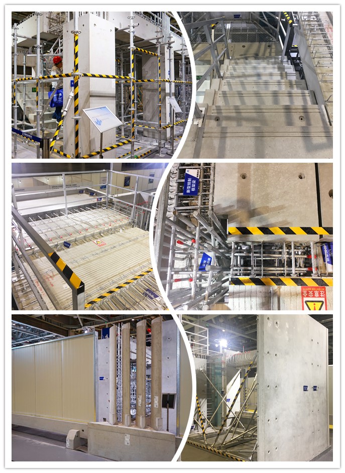 同時(shí)展出的還有全預(yù)制異形圍墻和可拆卸式臨時(shí)圍墻,結(jié)構(gòu)穩(wěn)定,拆裝方便;車(chē)間批量生產(chǎn),大大提高了施工效率以及材料重復(fù)使用次數(shù)。