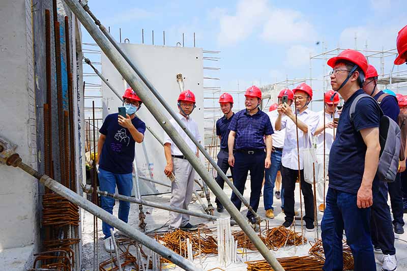 當(dāng)天上午,調(diào)研團(tuán)領(lǐng)導(dǎo)一行首先來到位于上海市閔行區(qū)七寶鎮(zhèn)的古美北社區(qū)S110501單元27-01地塊項目施工現(xiàn)場進(jìn)行實地參觀考察,董事長李軍全稱陪同。該項目為裝配整體式剪力墻結(jié)構(gòu)住宅工程,由上海旭融房地產(chǎn)開發(fā)有限公司開發(fā),通州建總集團(tuán)有限公司施工總承包,錦蕭科技承接該項目PC構(gòu)件生產(chǎn)供貨并提供裝配指導(dǎo)安裝服務(wù)。