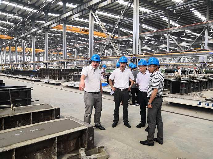 隨后,考察團(tuán)一行在公司副總經(jīng)理沈秋良的帶領(lǐng)下,參觀了公司預(yù)制構(gòu)件生產(chǎn)基地,大家對錦蕭科技生產(chǎn)基地的規(guī)劃設(shè)計建設(shè)高標(biāo)準(zhǔn)和設(shè)施配備專業(yè)化智能給予了贊賞,對于對錦蕭科技未來廣闊的發(fā)展前景寄予了期望。